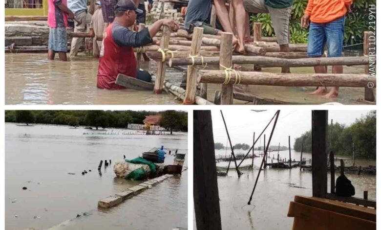 “Saya pasrah, Bang. Ikan kita hanyut semua. Padahal sebentar lagi mau panen untuk tahun baru. Harga bandeng sekarang lumayan, Rp20 ribu per kilo isi 5–6 ekor. Kerugian bisa sampai Rp20 sampai 40 juta,” ungkap Sarkiah.