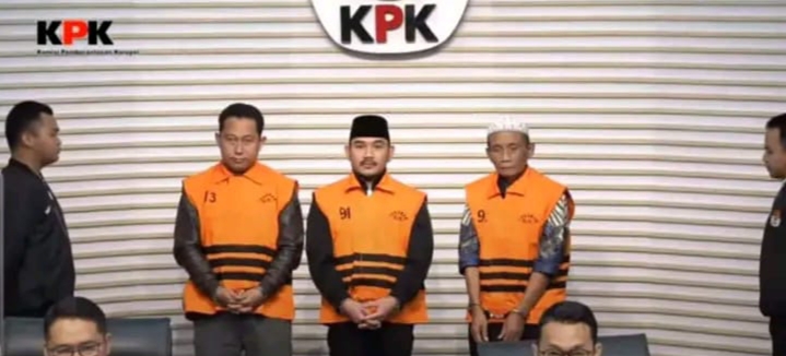 “Setelah ditemukan kecukupan alat bukti, KPK menetapkan tiga orang sebagai tersangka, yakni ADK selaku Bupati Bekasi periode 2025-sekarang, HMK selaku Kades Sukadami sekaligus ayah dari Bupati, serta SRJ selaku pihak swasta,” ujar Asep Guntur Rahayu, di Gedung Merah Putih KPK, Jakarta, Sabtu (20/12/2025).